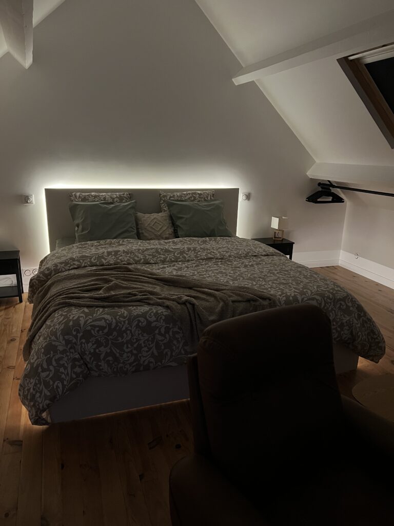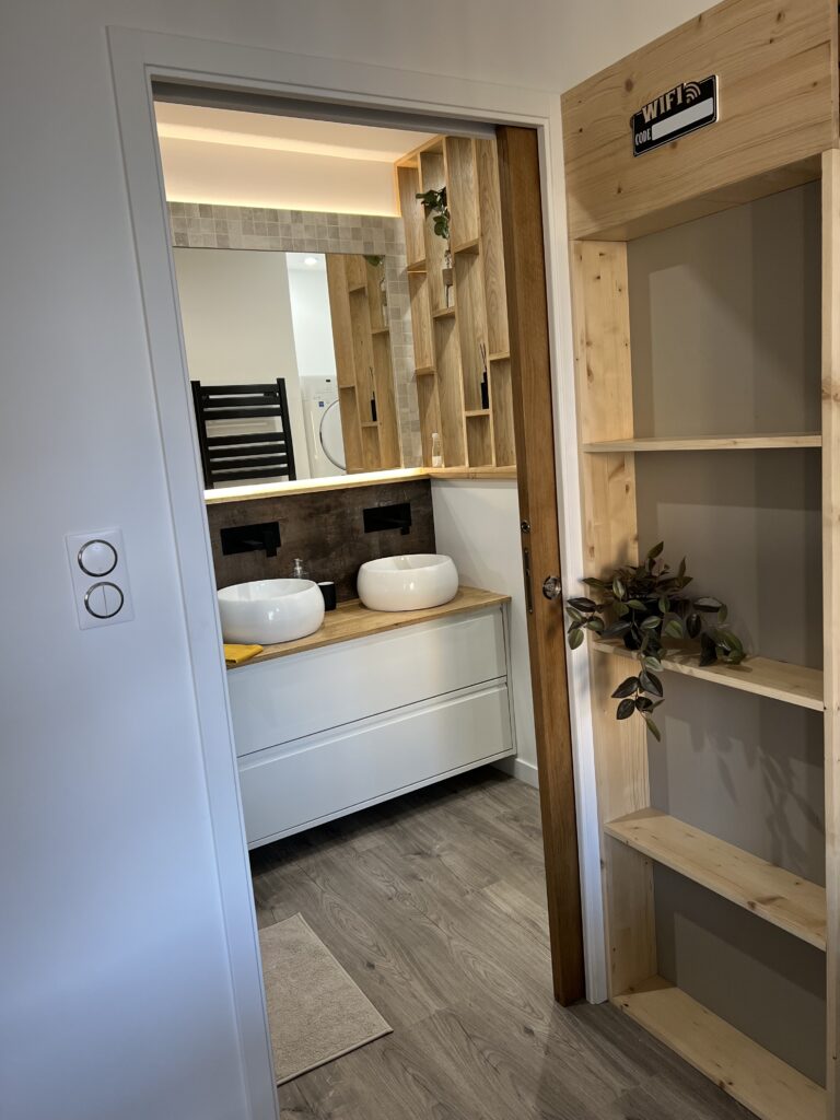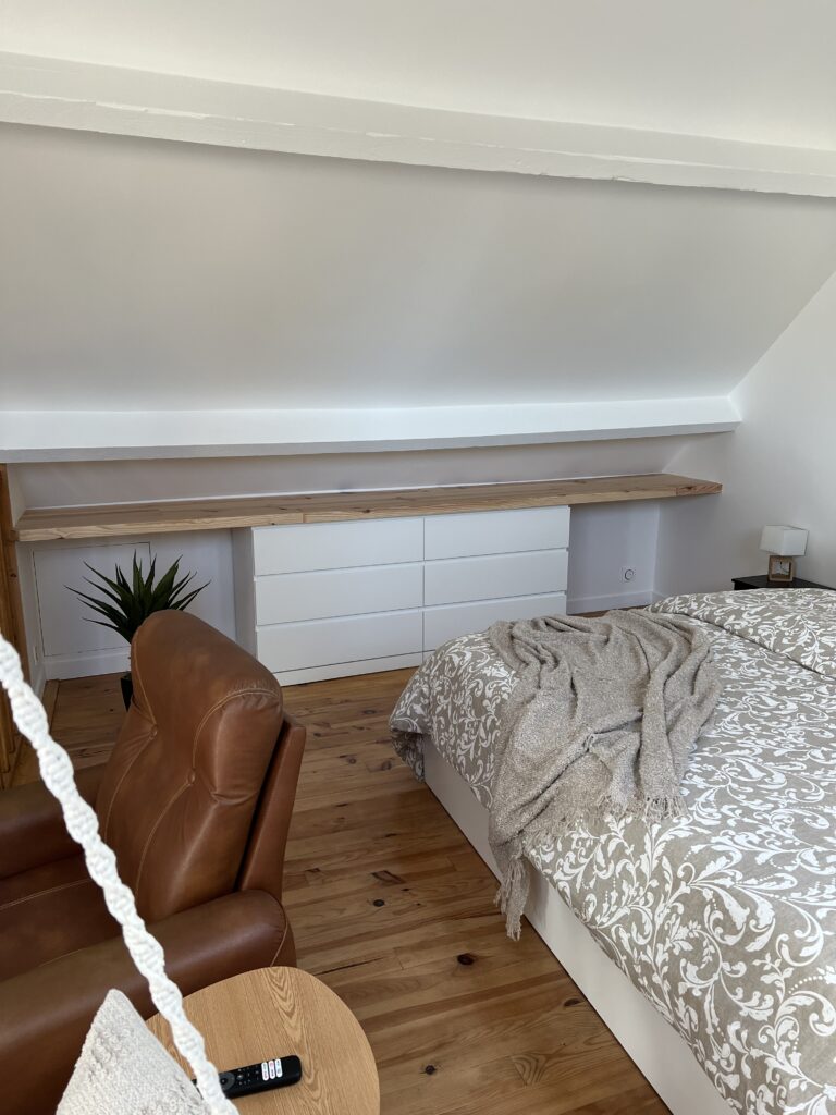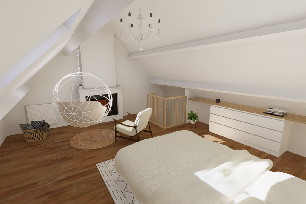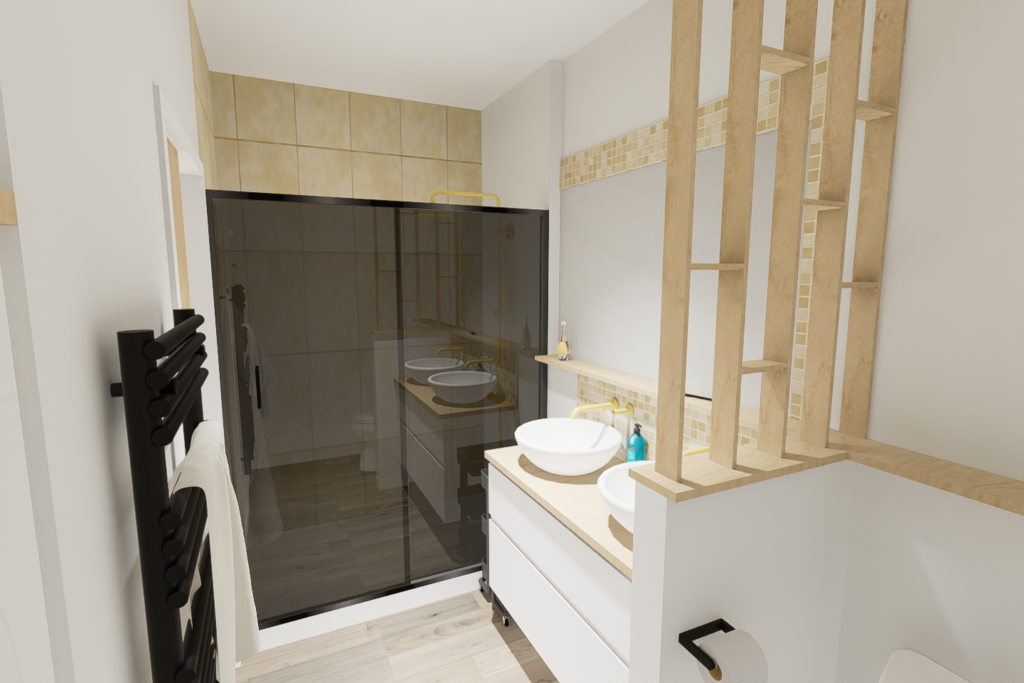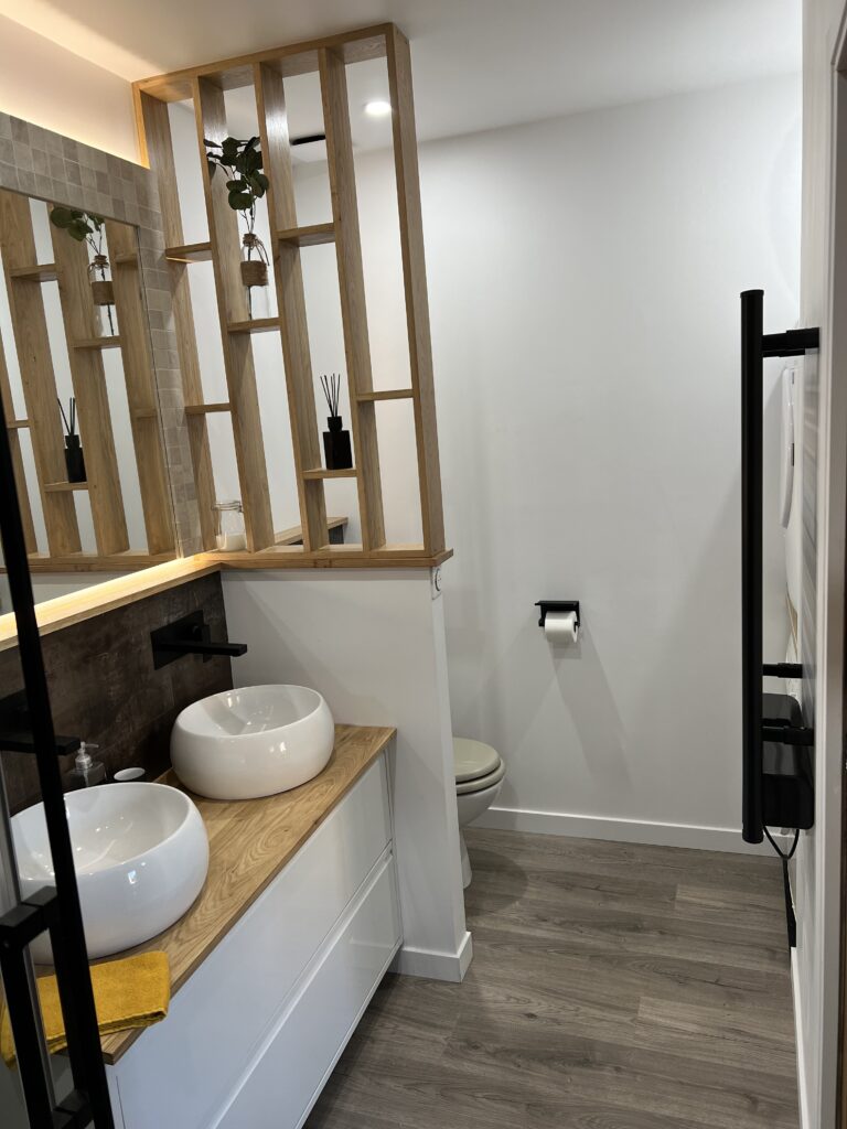 Pour la réalisation de ce projet, il a fallu imaginer un lieu de vie dans lequel tout été à réhabiliter, avec de la démolition, l’implantation d’un escalier, et le dessin d’une cuisine ainsi que d’une salle d’eau, dans le but de créer un logement complet et indépendant.